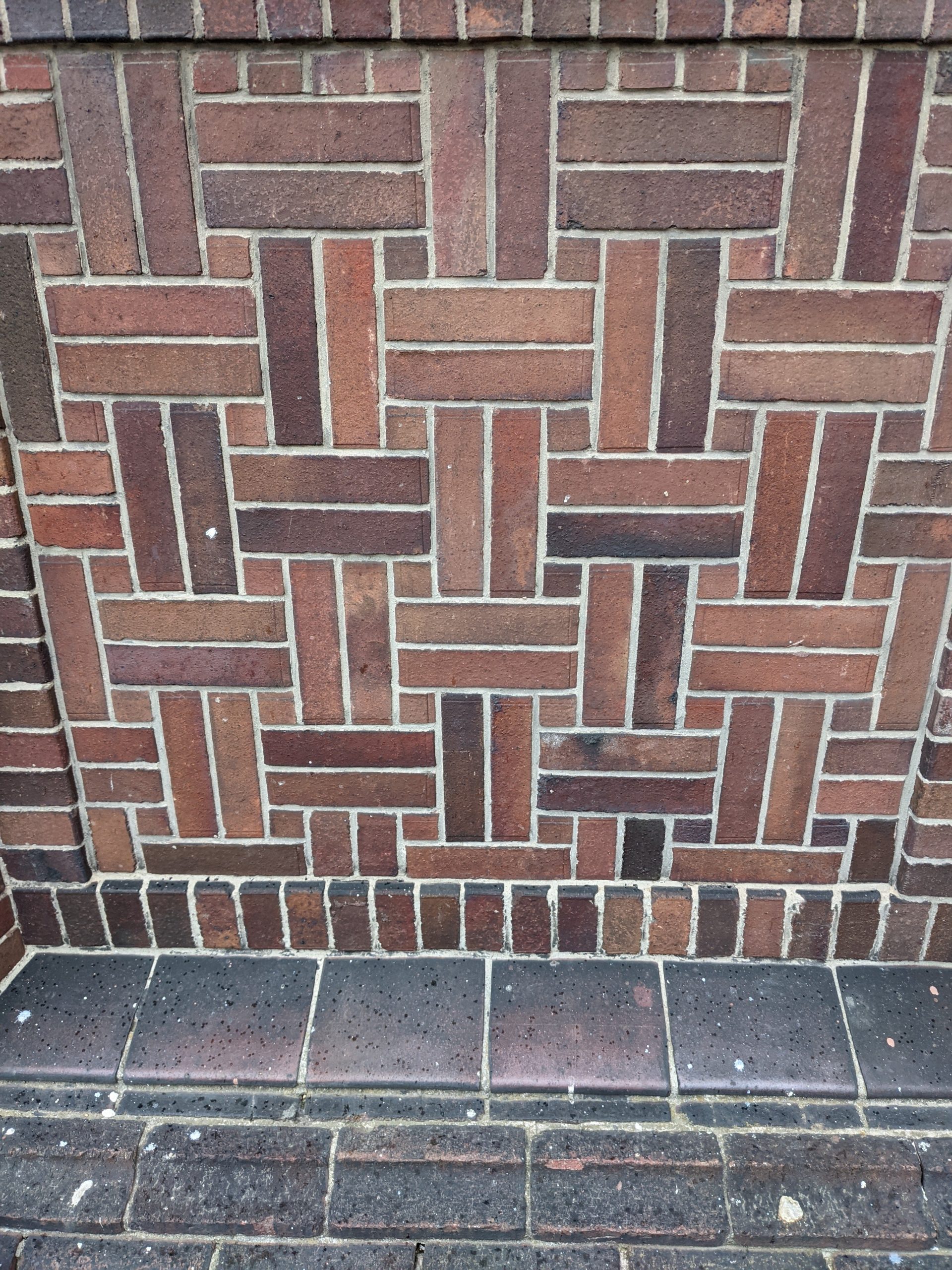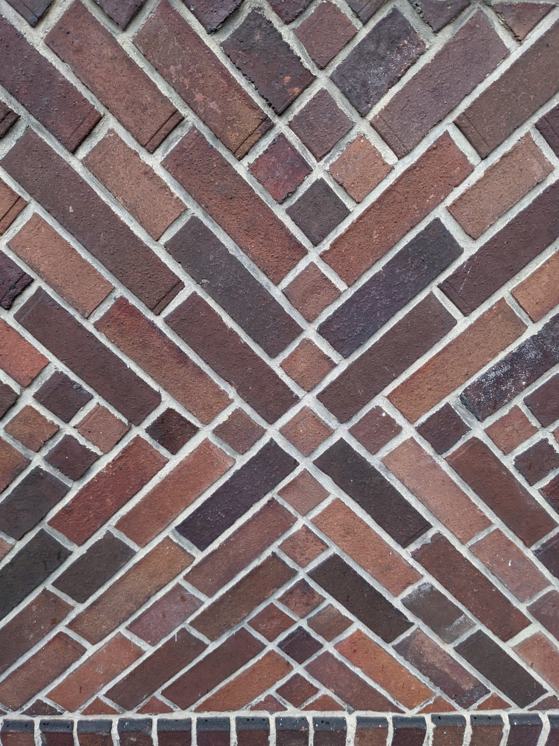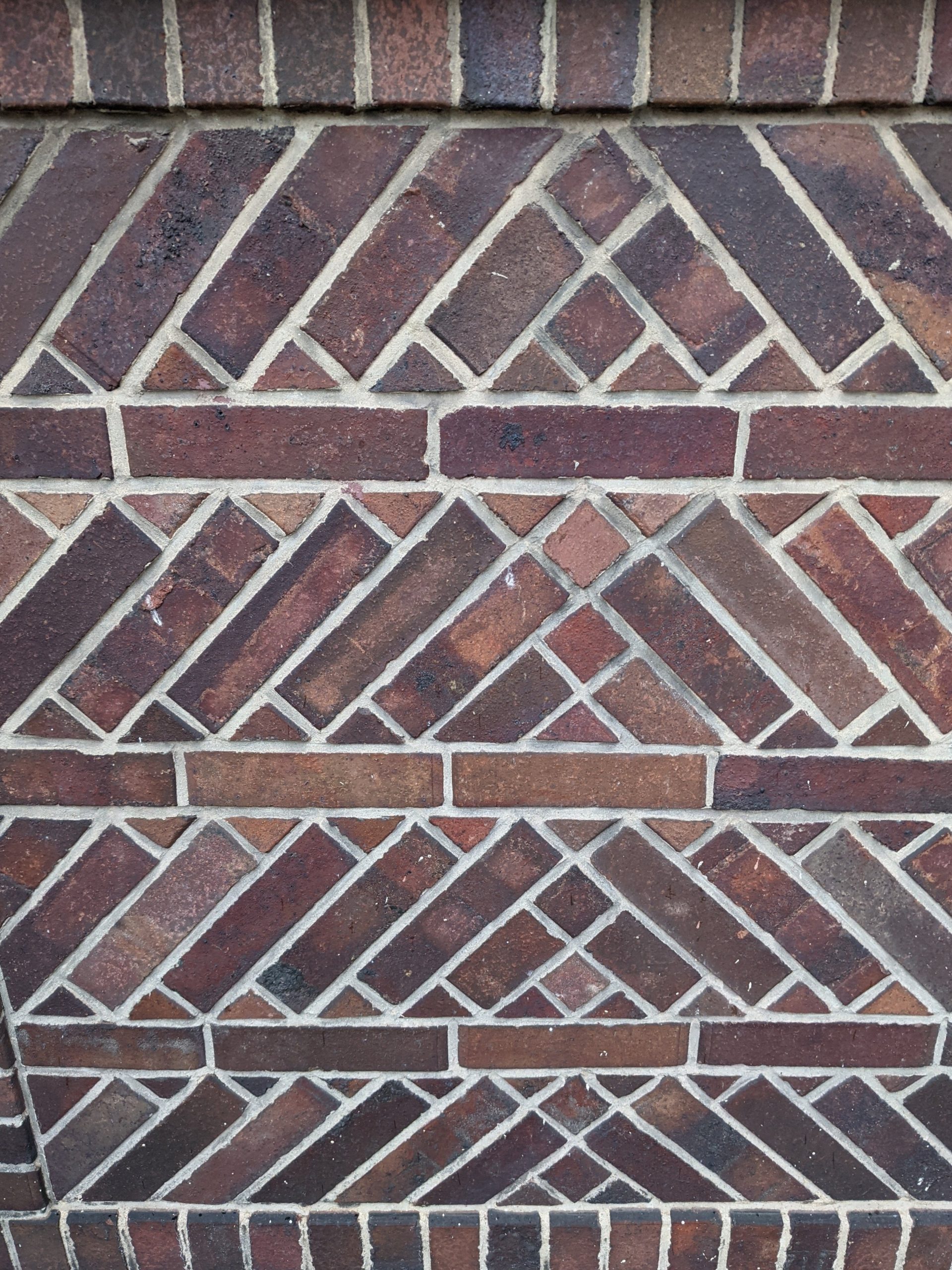 Wenn man der Fassade näherkommt, sieht man, wie abwechslungsreich die Backsteine in den Feldern angeordnet sind:
