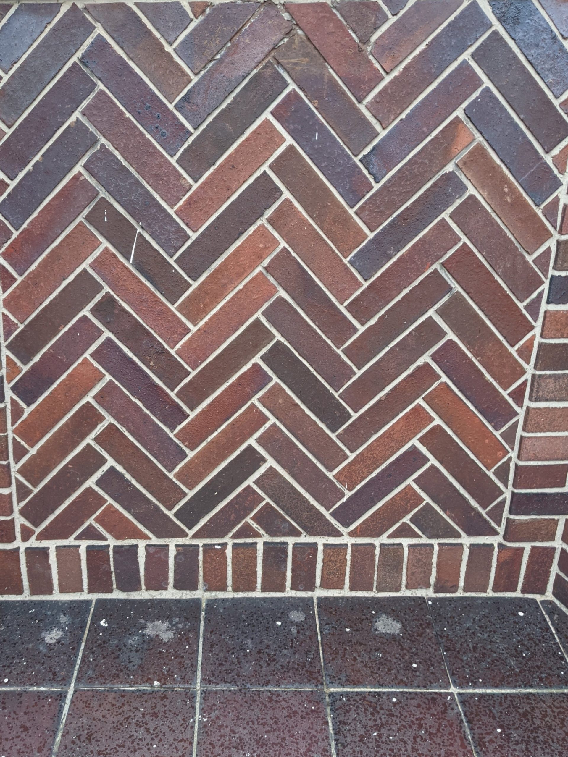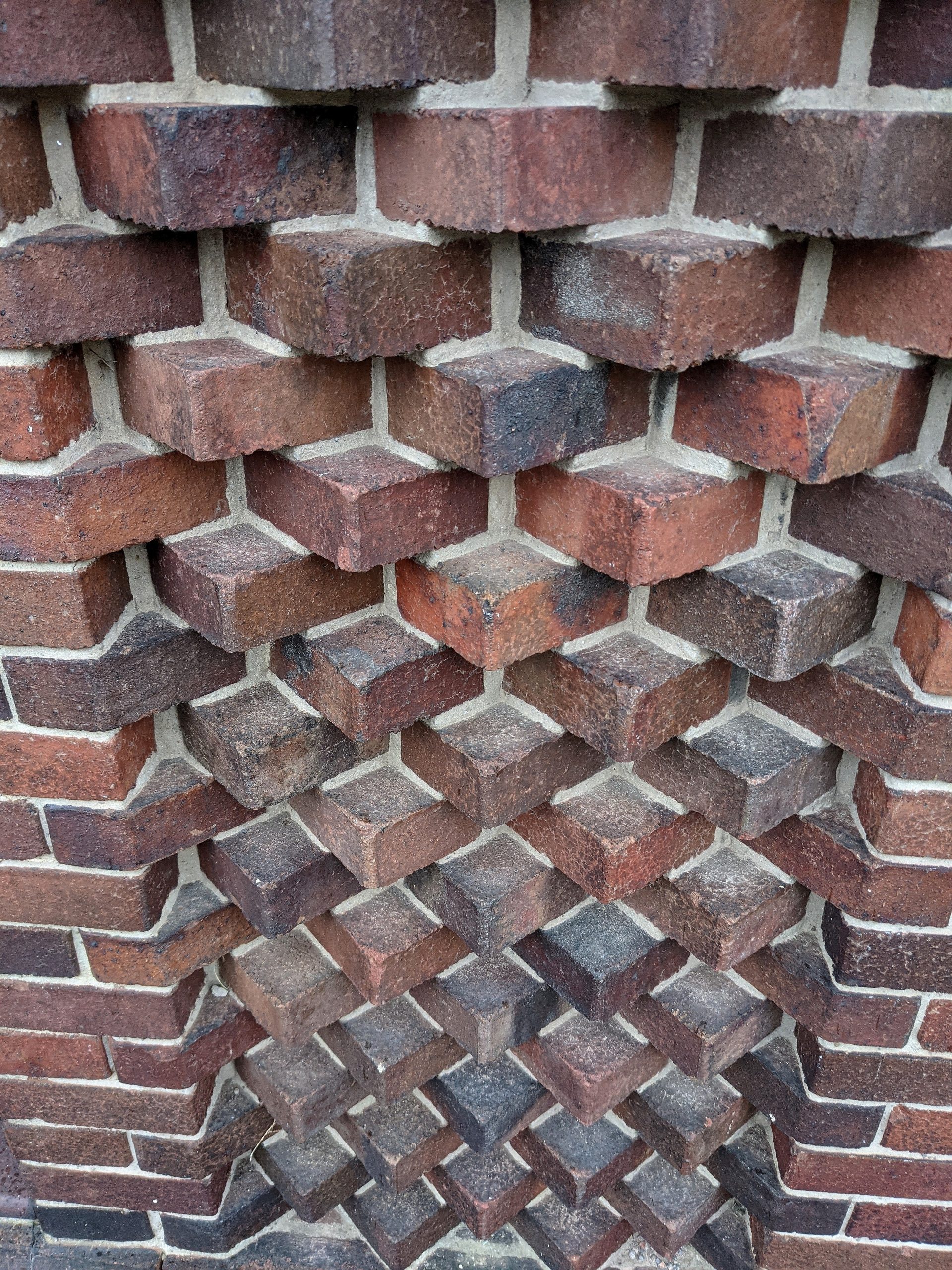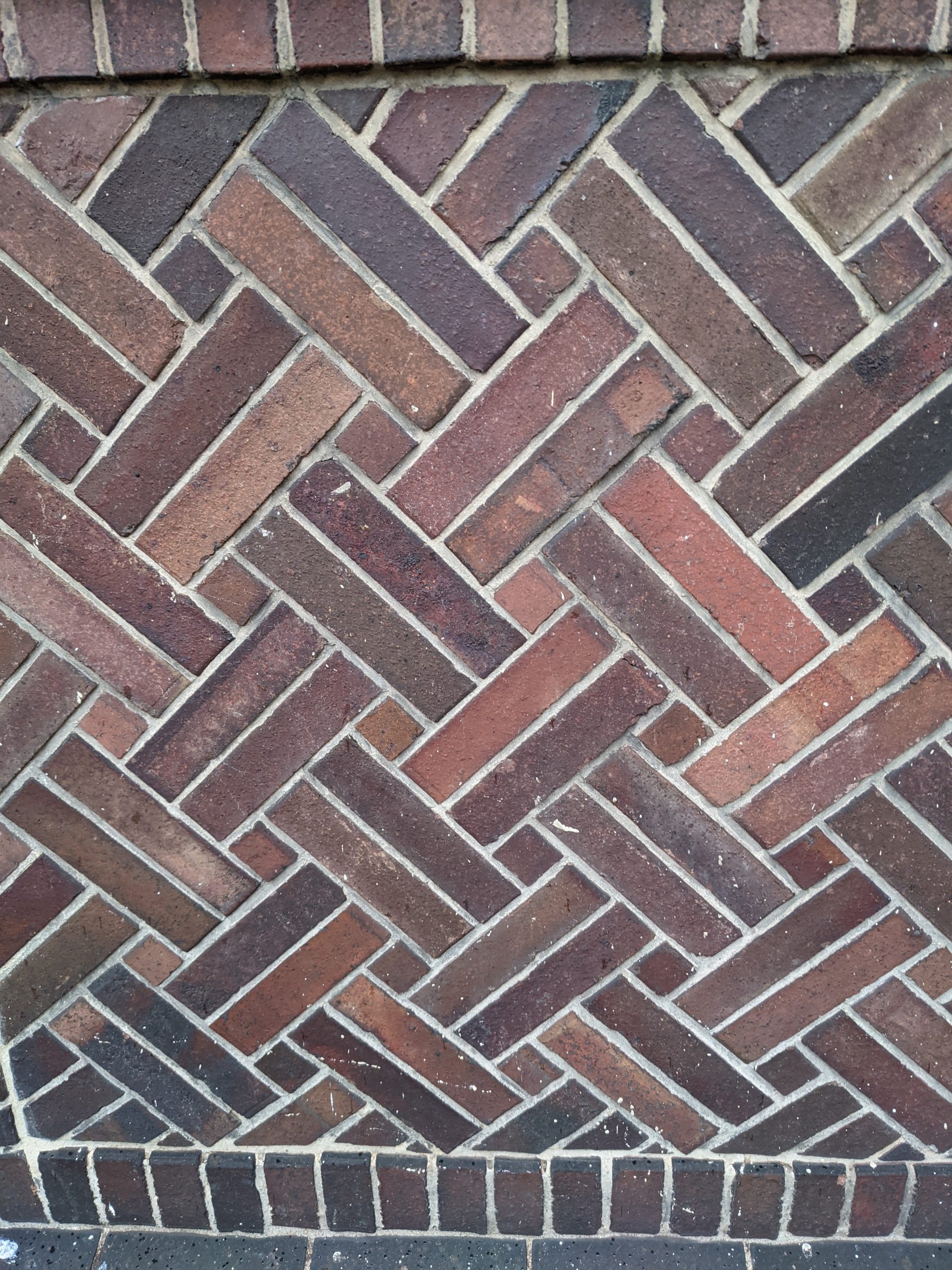 Wenn man der Fassade näherkommt, sieht man, wie abwechslungsreich die Backsteine in den Feldern angeordnet sind: