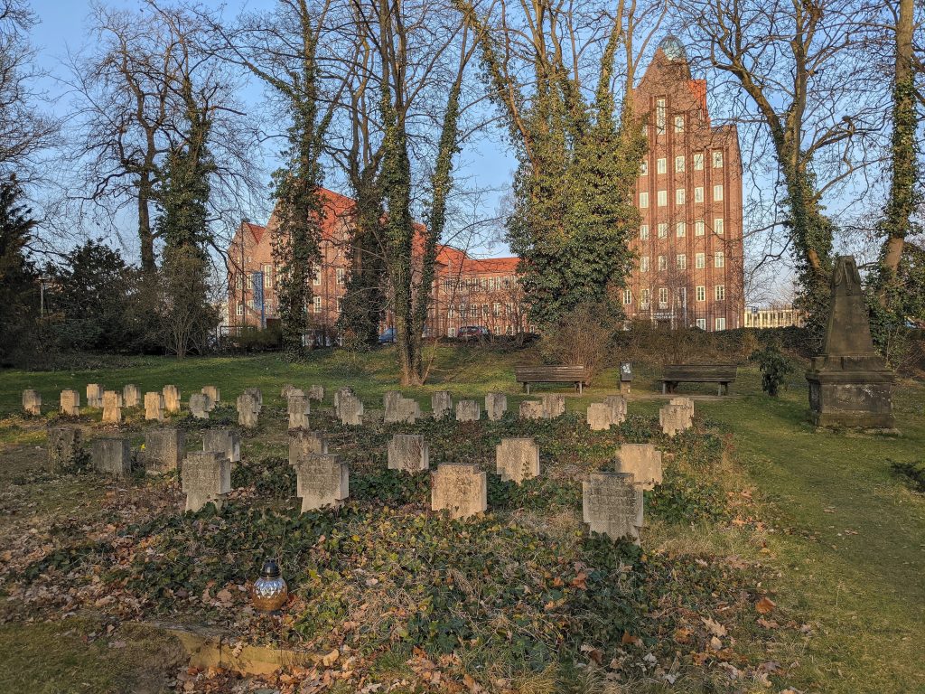 Westlich schließt sich der Katharinen- bzw. Garnisonsfriedhof an. Ich gehe in dem Artikel über Friedhöfe näher darauf ein.