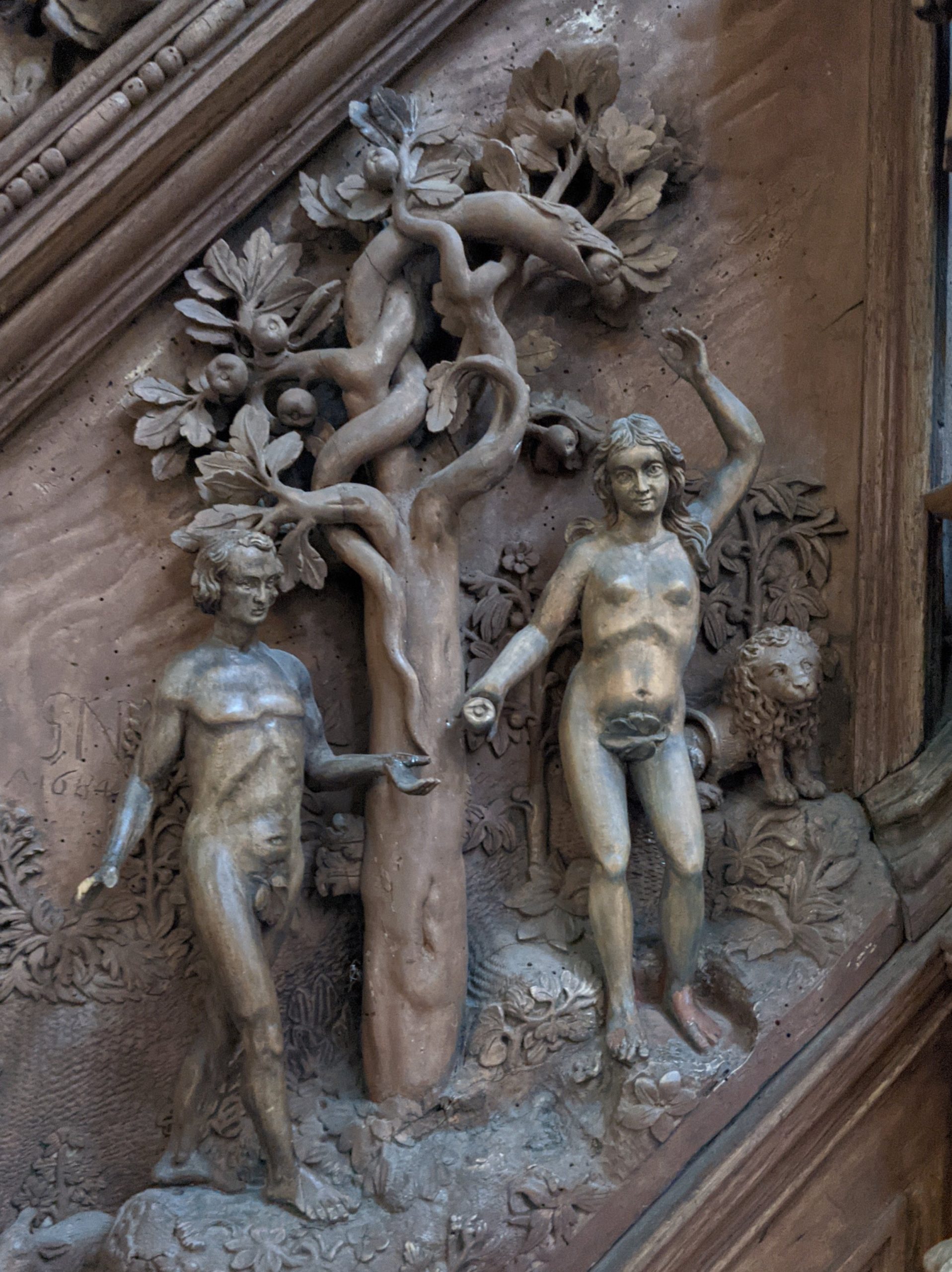 …und die Kanzel mit wunderschönen Schnitzereien aus dem 17. Jahrhundert.