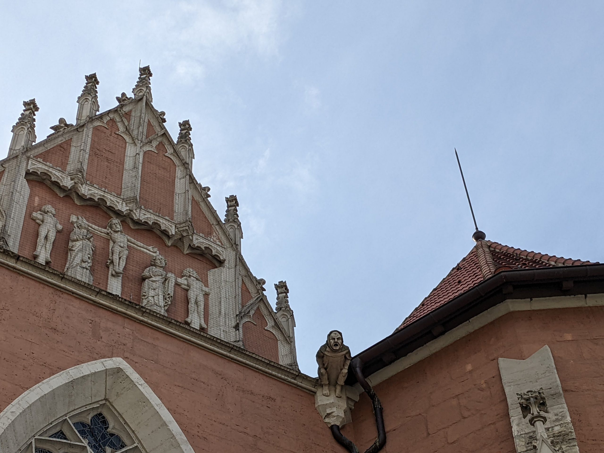 An der Kirche befindet sich schönes Figurenwerk und Wasserspeier.