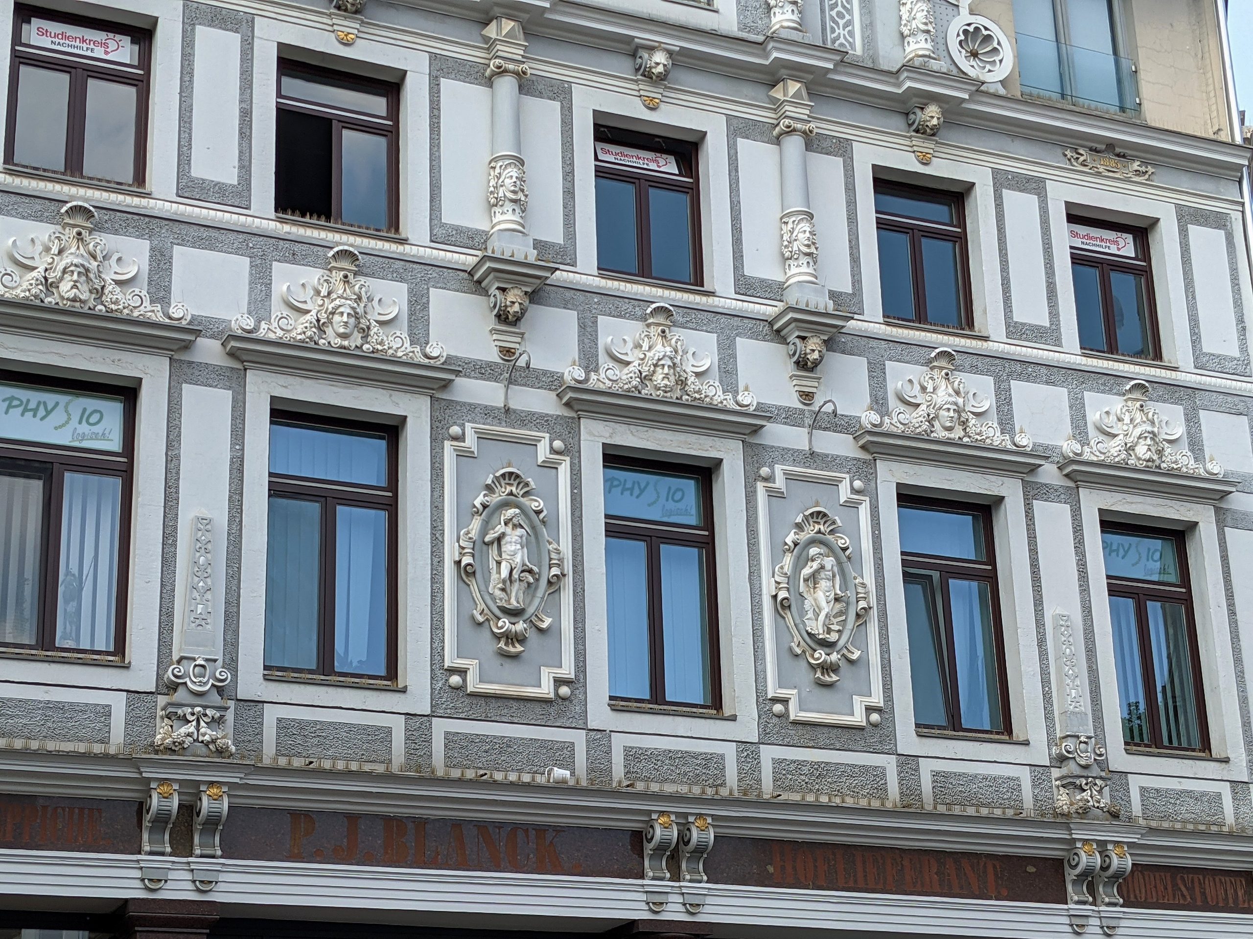 Links davon an der Ecke zur Schuhstraße findet sich ein weiteres Haus mit Renaissance-Fassade, die 1885 dort von Constantin Uhde angebracht wurde. Das Haus stammt eigentlich aus dem 18. Jahrhundert und hatte zu der Zeit eine klassizistische Fassade erhalten.