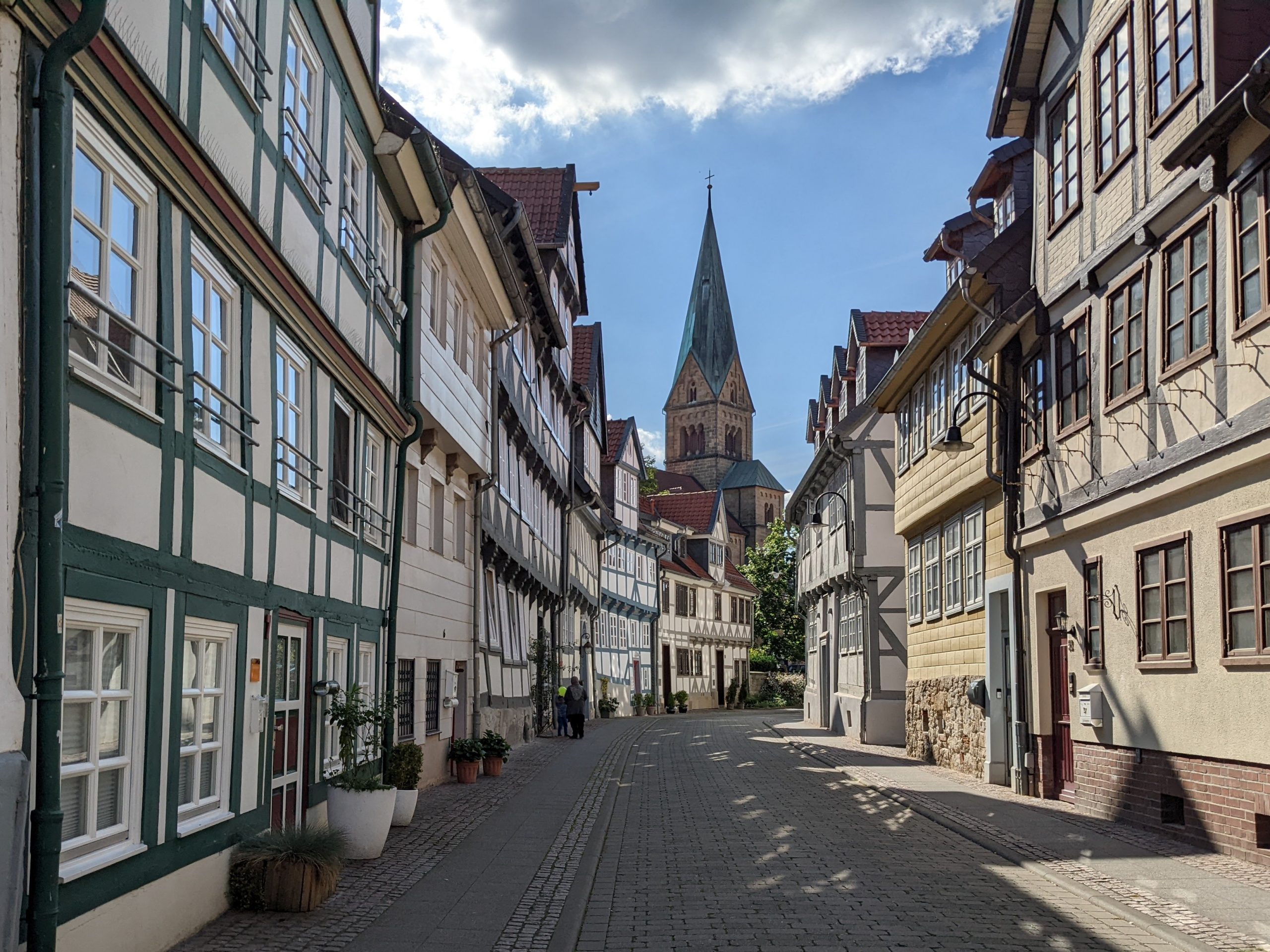Am Harztorplatz biegen wir nach Süden in die Krumme Straße ab. Die Petruskirche ist die einzige katholische und gleichzeitig neueste Kirche der Innenstadt. Gebaut wurde sie 1889-91 im neoromanischen Stil.