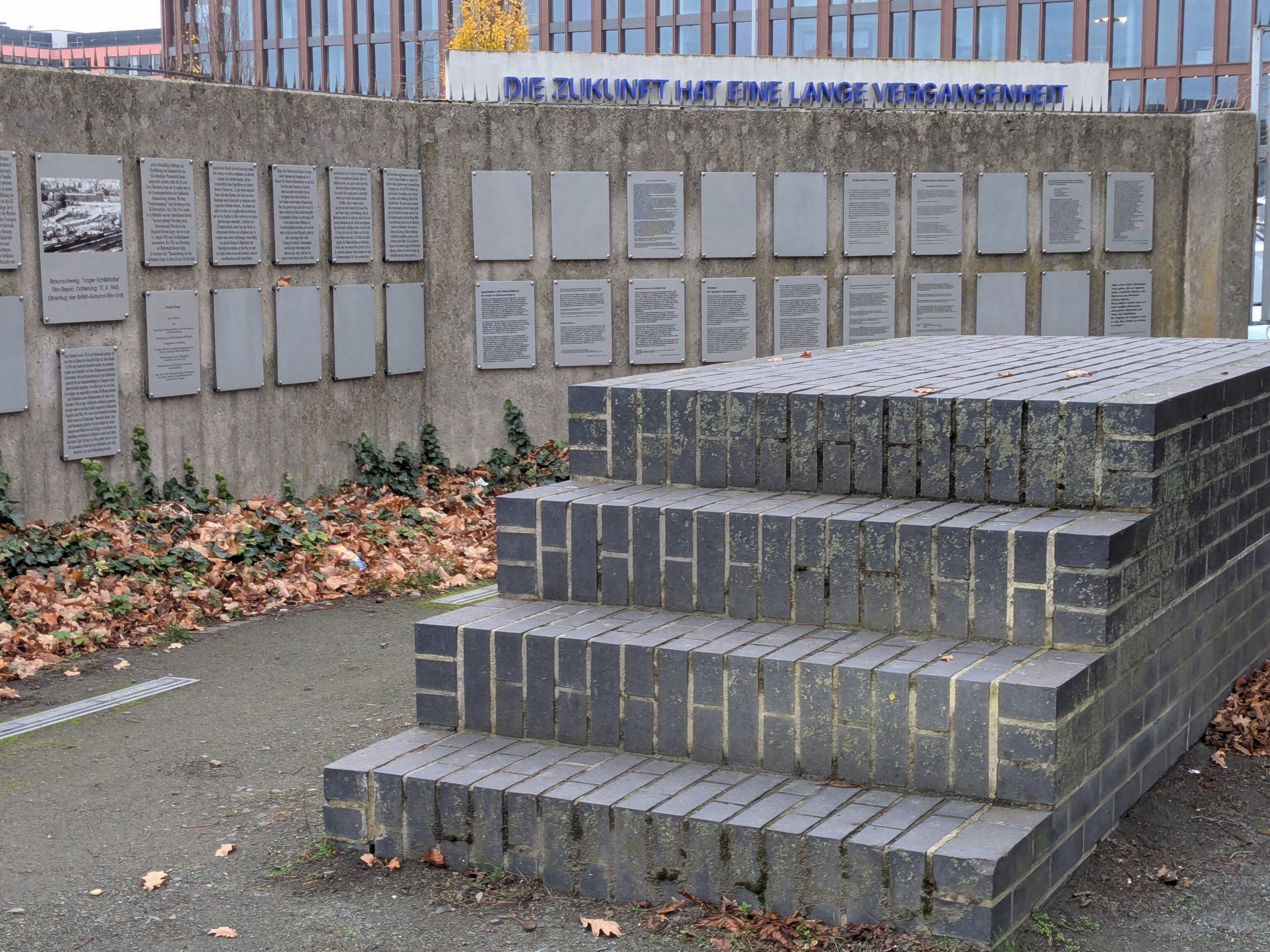 Was man „vergessen“ hatte: direkt auf dem Gelände nebenan (heute der Parkplatz eines Einkaufszentrums) hatte es ein Außenlager des KZ Neuengamme gegeben. In mehreren Baracken waren von November 1944 bis fast zum Kriegsende Zwangsarbeiter untergebracht, die für Büssing-NAG in der Rüstungsproduktion eingesetzt wurden. Genau an dieser Stelle gab es also guten Grund für eine andere Gedenkkultur. Es dauerte bis zum Jahr 2000, dass man eine von der Künstlerin Sigrid Sigurdsson gestaltete Gedenkstätte KZ-Außenlager Braunschweig Schillstraße einrichtete. Neben Informationstafeln an der Abgrenzungsmauer wurde das ursprünglich zum Schill-Denkmal gehörende „Invalidenhäuschen“ (auch Schillkapelle genannt) zum Archiv umfunktioniert.